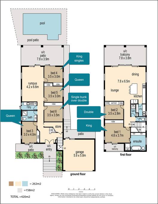Ocean views, short walk to stunning beach, 13 m water slide and sleeping up to 12 people in 6 bedrooms, this idyllic beach side oasis is the ultimate in spacious luxury and relaxation. Soak up the sun and views while relaxing on the balcony sofa or the indoor/outdoor dining, lounge by the expansive heated pool or walk 5 min through underpass to the amazing Sunrise Beach. 8 min drive to Hastings St, 4 min to Sunshine Beach Village. PERFECT FOR MULTI FAMILIES. Pedestrian tunnel underpass allows safe and quick access to beach without the need to cross any roads. Water park grade 13 metre waterslide provides hours of fun for the kids. Adjoined to the balcony, the adults can keep an eye on them whilst drinking, dining and relaxing on the balcony lounge and dining. The split level house features modern, open plan living, dining and kitchen with a fabulous flow of natural light on the upper level. Sea breezes are invited through the sliding doors which also create a seamless indoor/outdoor transition to the spacious balcony for soaking up the sun, alfresco dining or relaxing on the large outdoor sofa. Adjacent to the living area the ultra modern kitchen is absolute class in design with waterfall benches, stylish breakfast bar and practical butler's pantry. The upstairs master bedroom is complimented by a Juliet balcony and an enormous ensuite complete with freestanding bath tub, dual vanity and walk in shower. Upstairs also includes another bathroom and another bedroom with double bed. A separate downstairs living area, complete with board games, toys, books and table soccer, opens up to the undercover outdoor entertaining beside the expansive pool. The ground floor includes four spacious bedrooms all with built in robes and a large beautifully finished modern bathroom. Air-conditioned with ceiling fans throughout. Set on 800m2 it includes two good sized lawns alongside the house for playing backyard sports by the heated pool. Trampoline for the kids. * Beach access is a safe and accessible 5+ minute walk via an underpass so there are no roads to cross. * A 10+ minute walk has you at the outdoor tables overlooking Sunrise Beach at the excellent Chalet & Co café * A 15+ minute walk or 4-5 minute drive and you’re immersed in the atmospheric Sunshine Beach Village and Surf Club * 3 minute drive to Sunrise Shops, Noosa Aquatic Centre and Noosa Tennis Club * 5 minute drive to Noose Junction * 8 minute drive to Hastings Street * 27 minutes to Sunshine Coast Airport - Sleeps 12 adults in beds - Includes linen and towel package - Heated swimming pool - This house is strictly non-smoking and no functions.